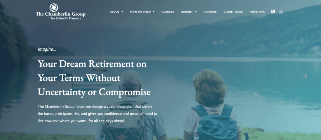 The Chamberlin Group is a financial services company offering comprehensive retirement planning for Americans. Their holistic retirement planning covers everything from taxes, estates, insurance, finances, and more. They are a small team of financial experts deeply committed to helping families craft a financially sound future.